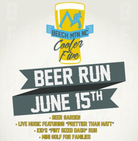 The race starts at Beech Mountain town hall, runs 5K through the Bark Park, greenways and some side streets of Beech Mountain with beautiful views along the way. Four stops, each sponsored by a different brewery, at about .5 each will serve 2 oz. of beer to race participants.