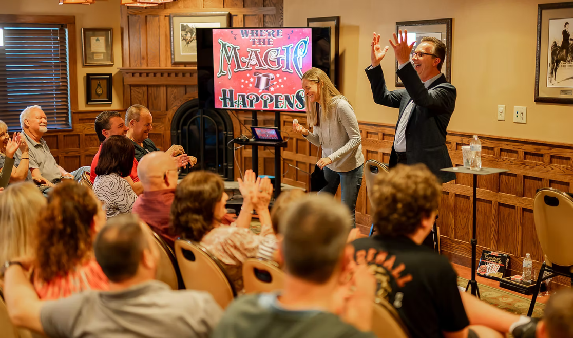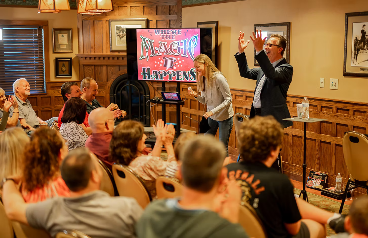 Step into Lyndy’s Magic Parlor for a mind-blowing magic and comedy show. No big stage or production. No rabbits or tigers. Only a masterful blend of clean humor, sleight of hand, and tons of audience involvement performed in an intimate setting.