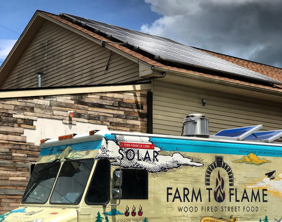 The Farm 2 Flame food truck creates a casual dining experience that balances innovation and sustainability. Committed to the impact we have on the environment from being conscious of how we operate the food truck, they are setting an example for other companies and individuals to follow and we’re proud of it. The truck runs on biodiesel from High Country Biofuels. When the truck is parked at AMB it's powered 20 240 watt solar panels. Our utensils and containers decompose within 50 days