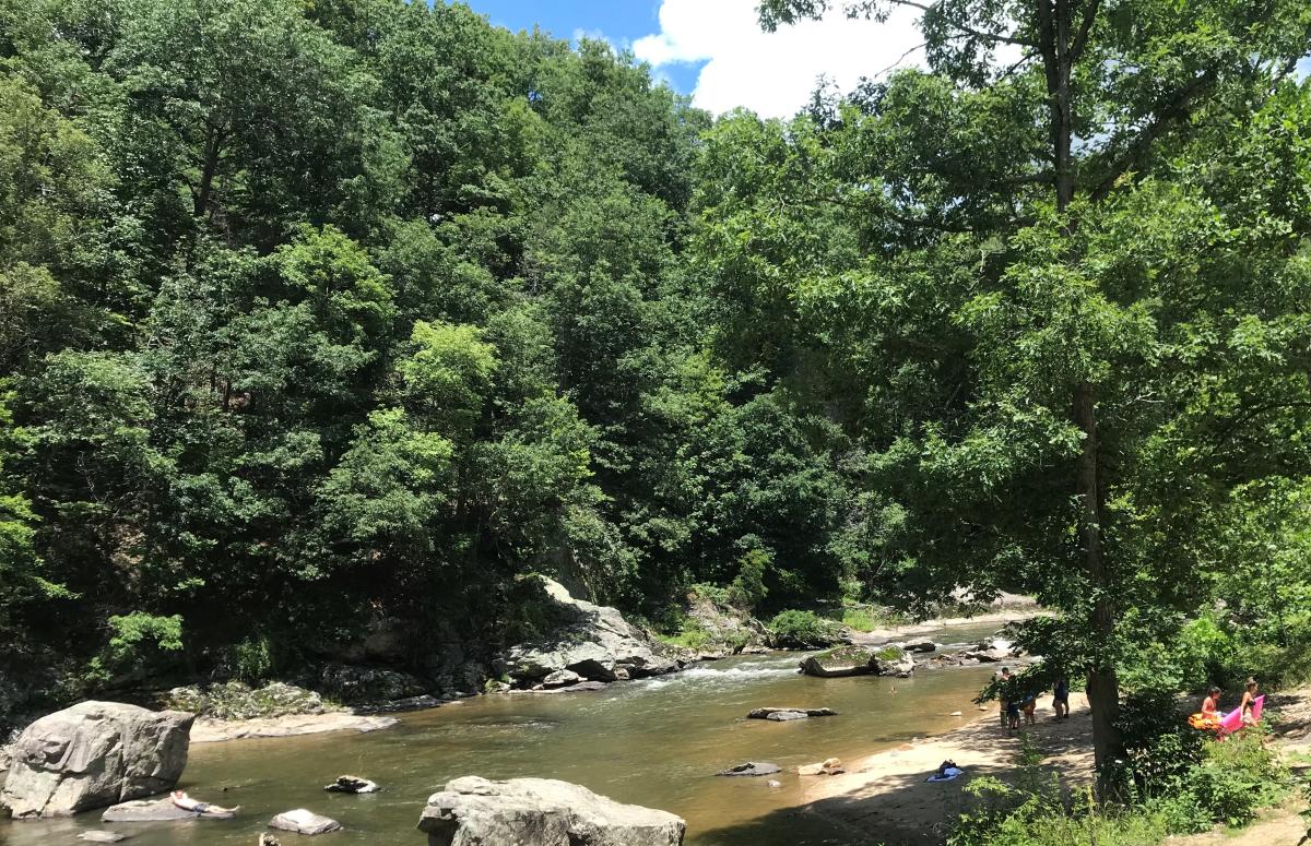 Guy Ford River Access is a popular spot with sunbathers, anglers and experienced paddlers. The 27-spot parking lot also includes a concrete wheelchair ramp, complete with handrails, leading to a sandy part of the river's edge.