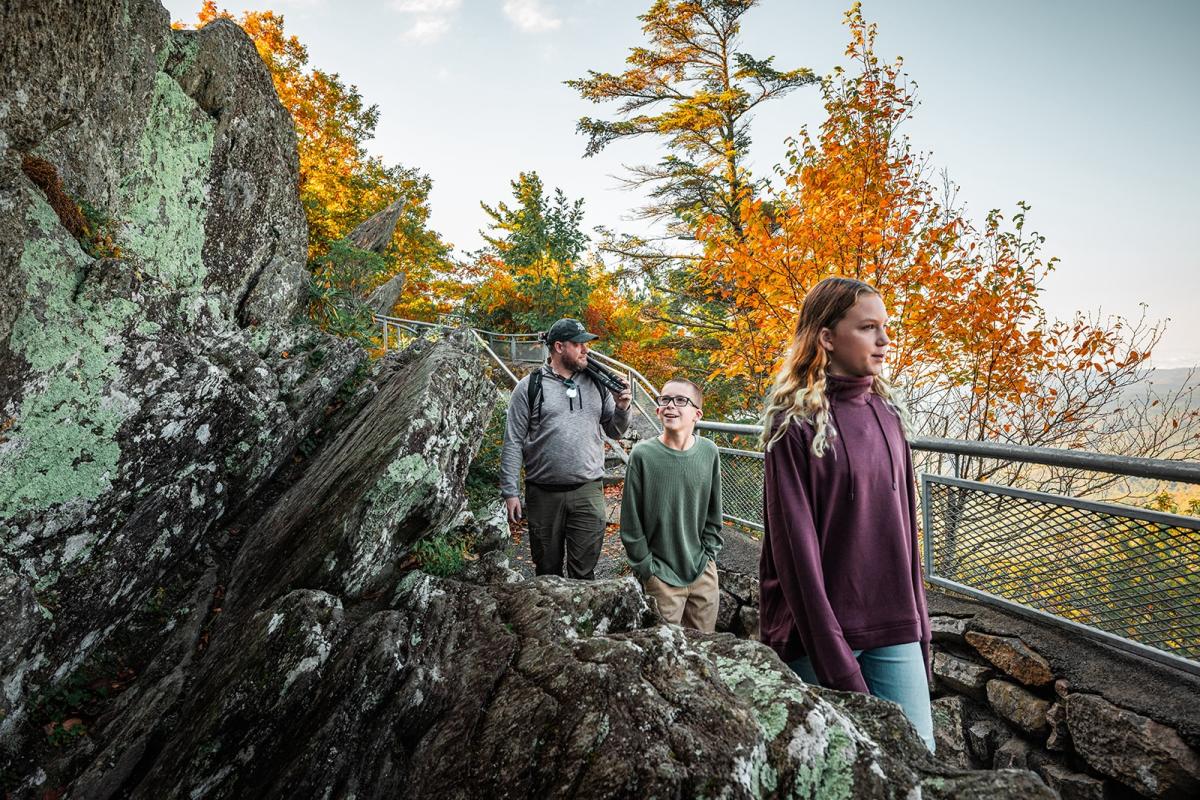 North Carolina's oldest travel attraction since 1933. A short scenic walk includes views of Grandfather Mountain, Table Rock, and Hawksbill. Also enjoy a small garden waterfall, observation tower, and unique gift shops.