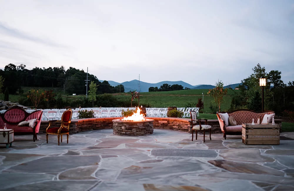 A giant water wheel feeds a tumbling rock creek that wraps around the venue and a gorgeous outdoor patio. The creek rolls by the giant outdoor fire pit and finishes with a stunning waterfall that can be the backdrop to your dream wedding or other corporate events! The venue is one of the kind in the area, offering a climate-controlled environment that can hold up to 285 (344 for an outdoor event) people comfortably with plenty of parking for everyone that attends.